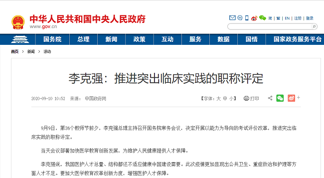 之前,國務(wù)院常務(wù)會(huì)議召開,會(huì)議上李克強(qiáng)總理主持召開國務(wù)院常務(wù)會(huì)議,決定開展以能力為導(dǎo)向的考試評(píng)價(jià)改革,推進(jìn)突出臨床實(shí)踐的職稱評(píng)定。
