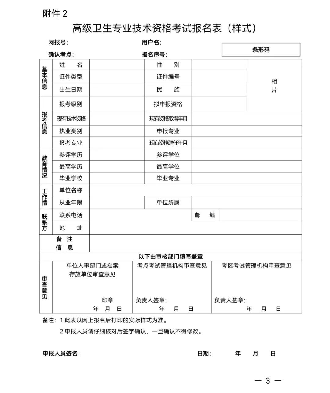 2.高級衛(wèi)生專業(yè)技術(shù)資格考試報名表