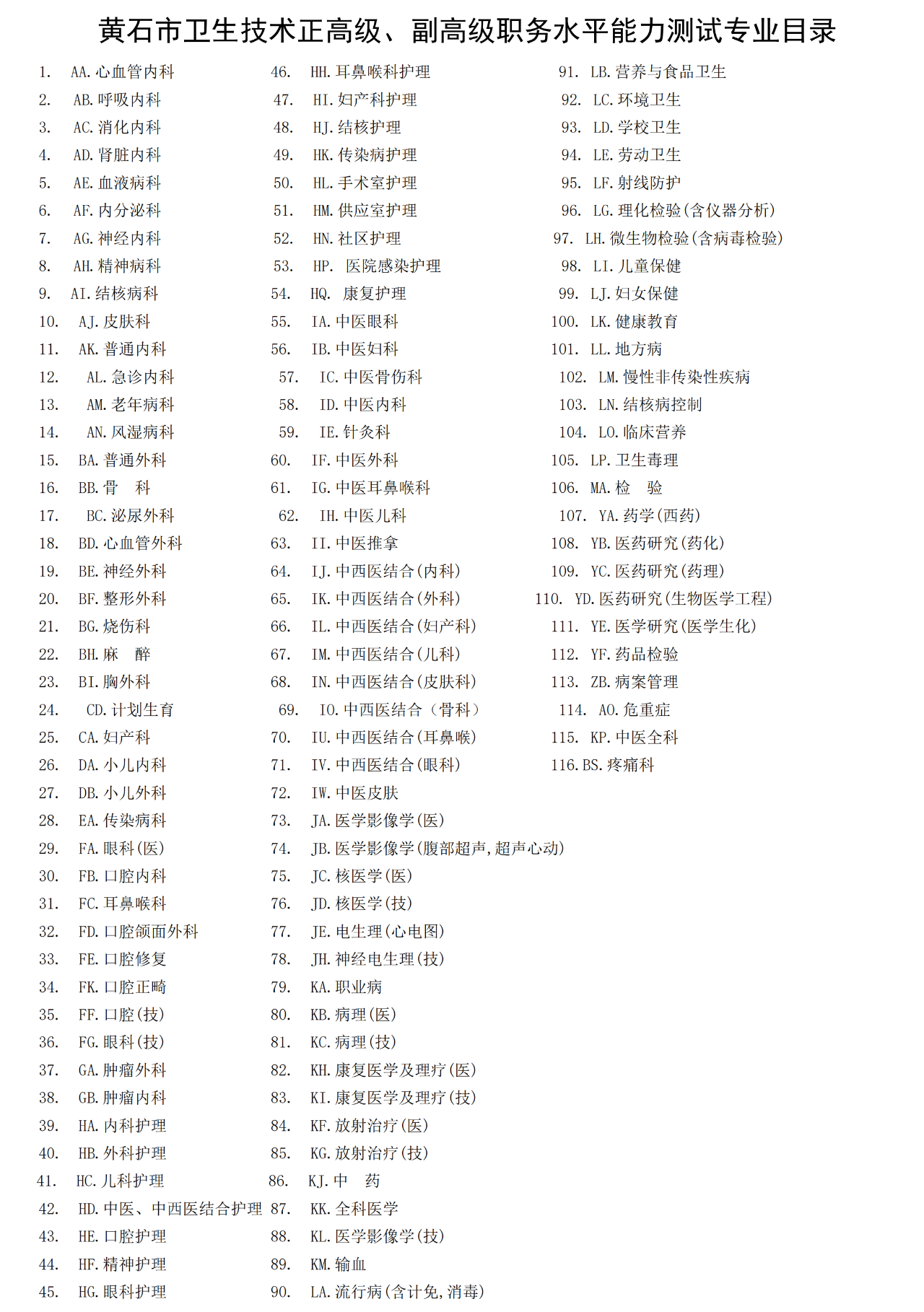 附件:黃石市衛(wèi)生技術(shù)正高級、副高級職務(wù)水平能力測試專業(yè)目錄