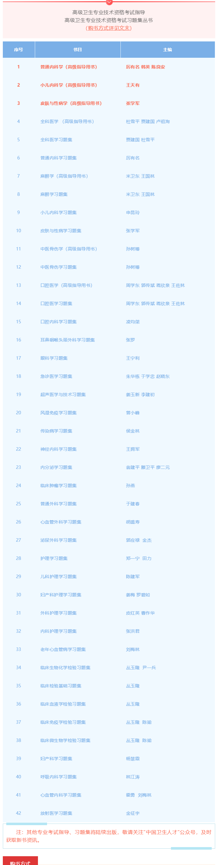 中國衛(wèi)生人才網(wǎng)發(fā)布高級衛(wèi)生專業(yè)技術(shù)資格考試部分新書上市!各位考生速度看過來!醫(yī)學(xué)教育網(wǎng)整理具體內(nèi)容如下: