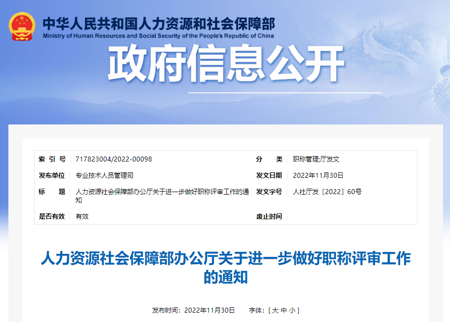 2022年11月30日,國家人力資源社會(huì)保障部辦公廳印發(fā)《關(guān)于進(jìn)一步做好職稱評(píng)審工作的通知》。通知主要從調(diào)整職稱評(píng)審專業(yè)、完善職稱評(píng)審標(biāo)準(zhǔn)、創(chuàng)新職稱評(píng)審機(jī)制、優(yōu)化職稱評(píng)審服務(wù)等四個(gè)方面提出改革舉措。