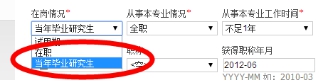 l 在崗情況一項(xiàng)中,以研究生學(xué)歷報(bào)考的考生應(yīng)注意,若本人為當(dāng)年畢業(yè)研究生,尚未獲取畢業(yè)證書,此處需要選擇為“當(dāng)年畢業(yè)研究生”。