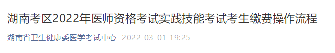 3月2日起!湖南考區(qū)2022年公衛(wèi)醫(yī)師實(shí)踐技能繳費(fèi)入口已開通!