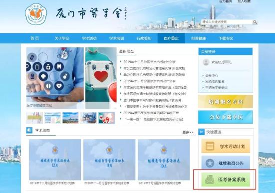 廈門市2020年醫(yī)師資格考試備案統(tǒng)一在廈門市醫(yī)學(xué)會網(wǎng)站進行。廈門市醫(yī)學(xué)會網(wǎng)址:http://www.xmma.org.cn/  備案入口:廈門市醫(yī)學(xué)會網(wǎng)站右下角醫(yī)考備案系統(tǒng)(如下圖)
