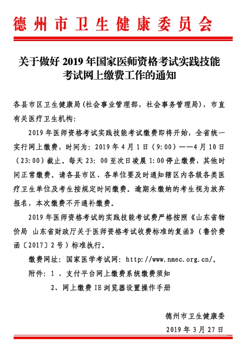 2019年山東省德州市公衛(wèi)執(zhí)業(yè)/助理醫(yī)師實(shí)踐技能考試?yán)U費(fèi)時(shí)間/繳費(fèi)入口