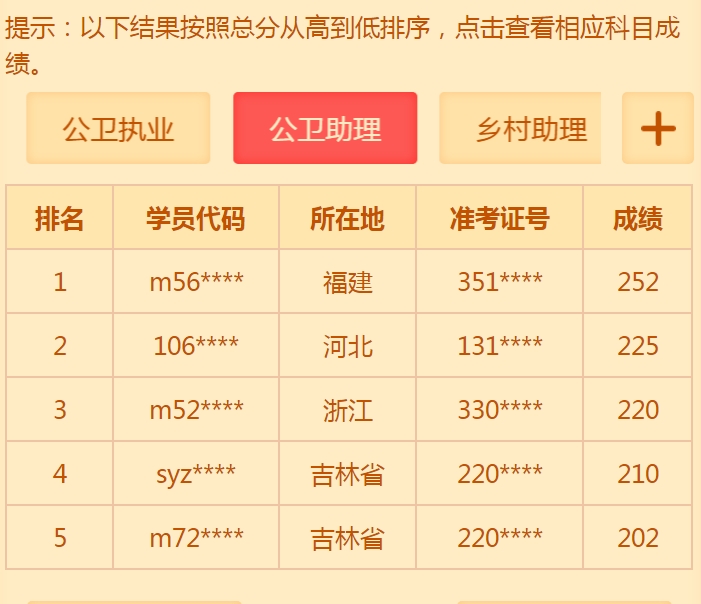 2018年公衛(wèi)執(zhí)業(yè)助理醫(yī)師成績已經(jīng)公布,醫(yī)學(xué)教育網(wǎng)校的學(xué)員戰(zhàn)績喜人,小編在這里說聲恭喜恭喜??!快來一睹他們的風(fēng)采,點(diǎn)擊查看高分榜>>