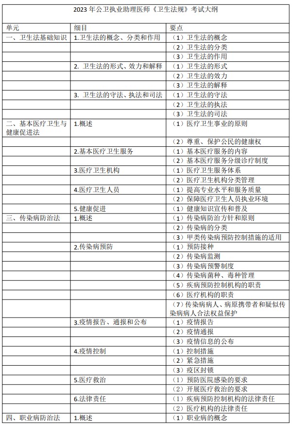2023年公衛(wèi)執(zhí)業(yè)助理醫(yī)師《衛(wèi)生法規(guī)》考試大綱部分預覽