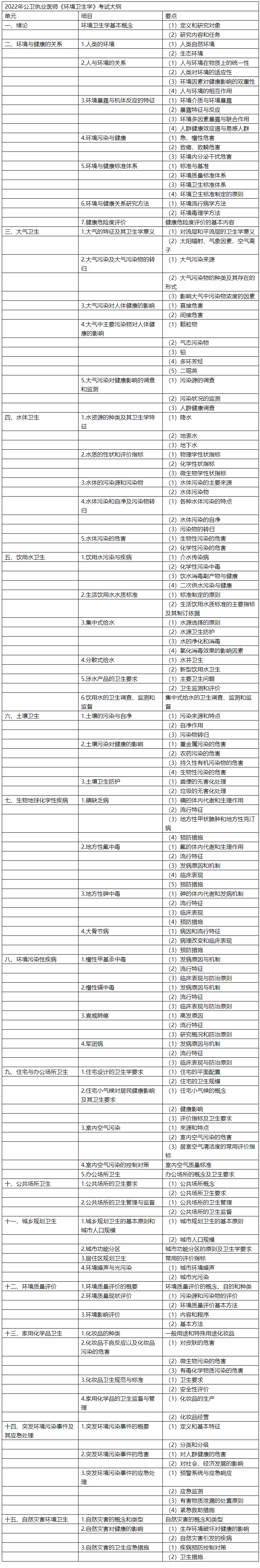 2022年公衛(wèi)執(zhí)業(yè)醫(yī)師《環(huán)境衛(wèi)生學(xué)》考試大綱word版本下載如下,2022年公衛(wèi)執(zhí)業(yè)醫(yī)師輔導(dǎo)課程,按照新版考試大綱及教材錄制,立即查看課程>>