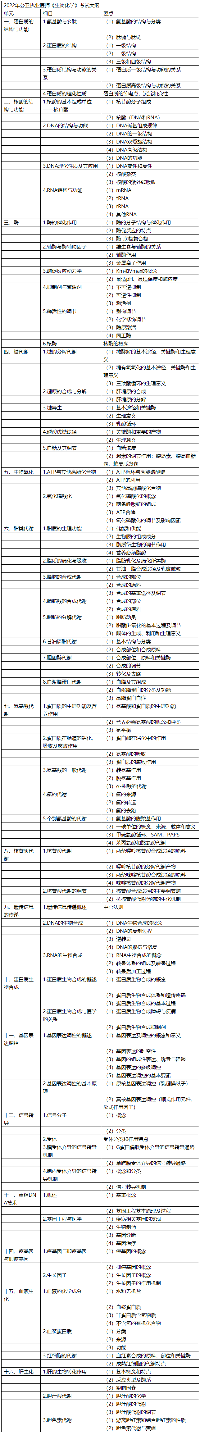 2022年公衛(wèi)執(zhí)業(yè)醫(yī)師《生物化學(xué)》考試大綱word文檔下載如下,2022年公衛(wèi)執(zhí)業(yè)醫(yī)師輔導(dǎo)課程,按照新版考試大綱及教材錄制,立即查看課程>>
