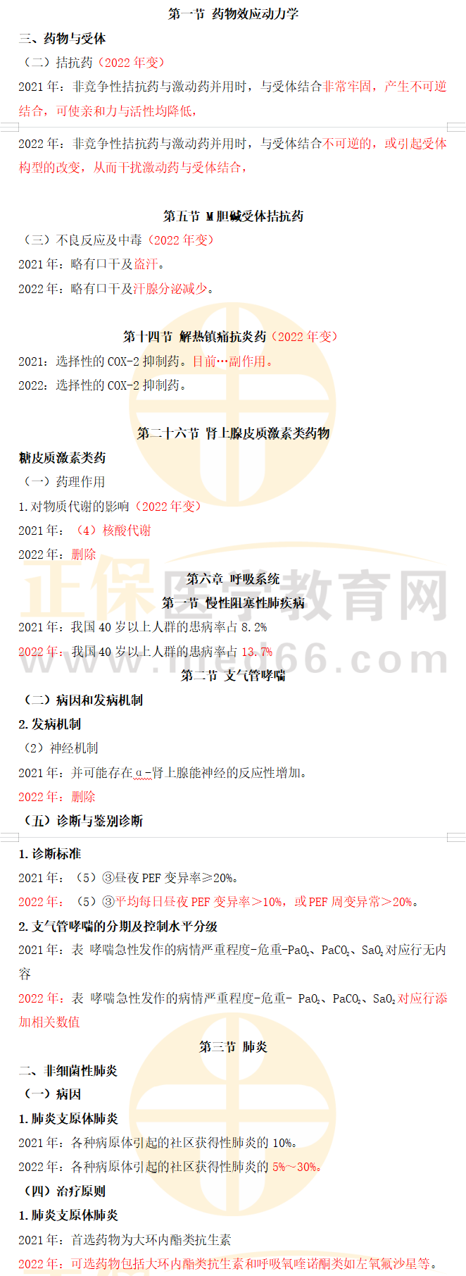 國(guó)家2022年公衛(wèi)執(zhí)業(yè)醫(yī)師《藥理學(xué)》考試教材變動(dòng)對(duì)比