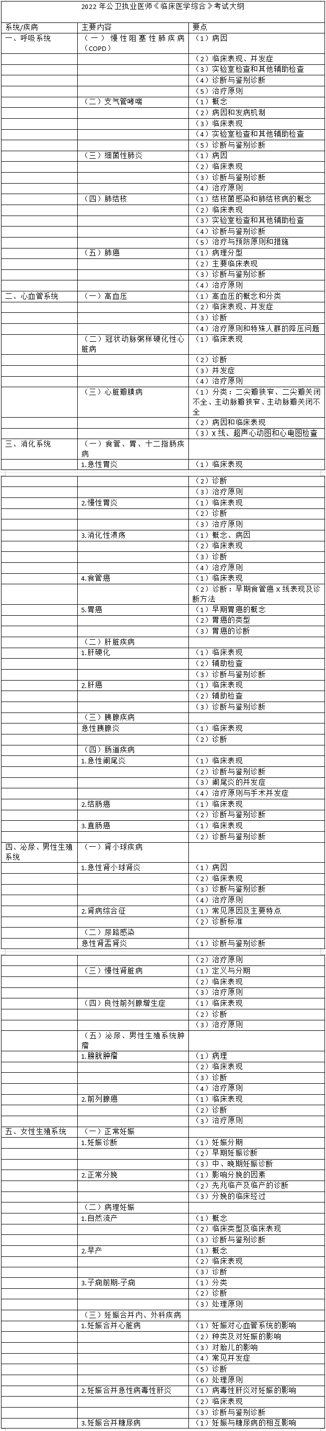 2022年公衛(wèi)執(zhí)業(yè)醫(yī)師《臨床醫(yī)學(xué)綜合》大綱