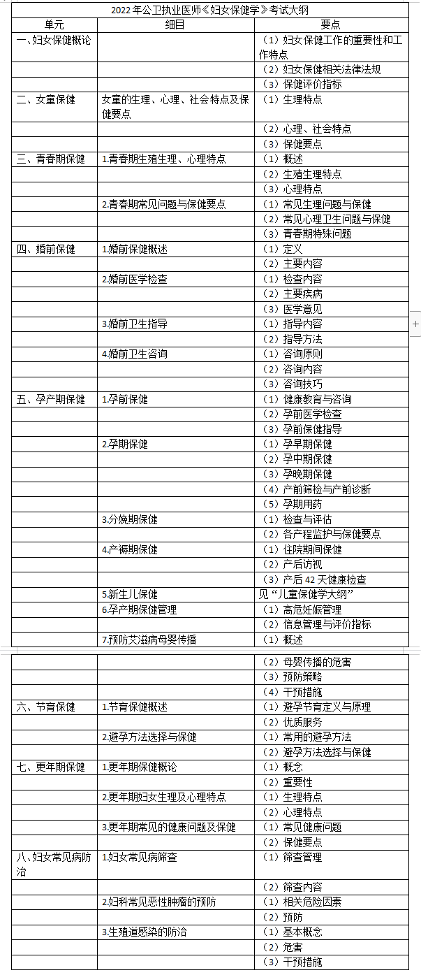 2022年公衛(wèi)執(zhí)業(yè)醫(yī)師《婦女保健學(xué)》考試大綱在線下載