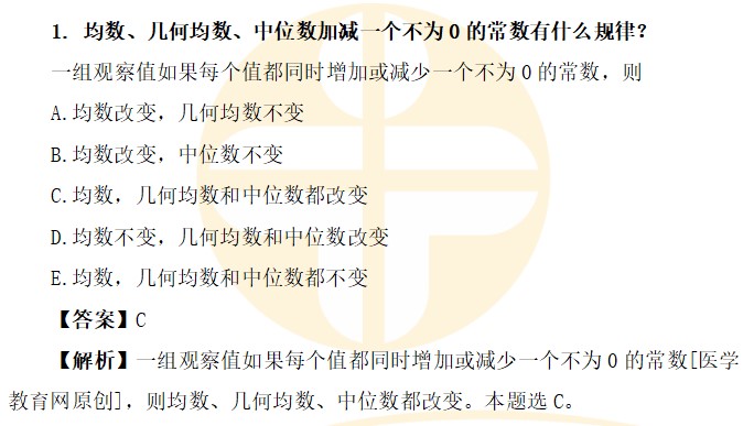 1.均數(shù)、幾何均數(shù)、中位數(shù)加減一個(gè)不為0的常數(shù)有什么規(guī)律?