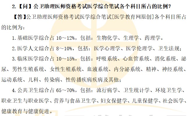 2.公衛(wèi)助理醫(yī)師資格考試醫(yī)學(xué)綜合筆試各個科目所占的比例?