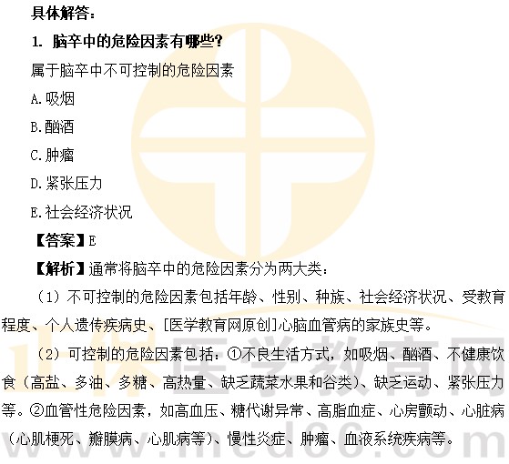 1.腦卒中的危險(xiǎn)因素有哪些?