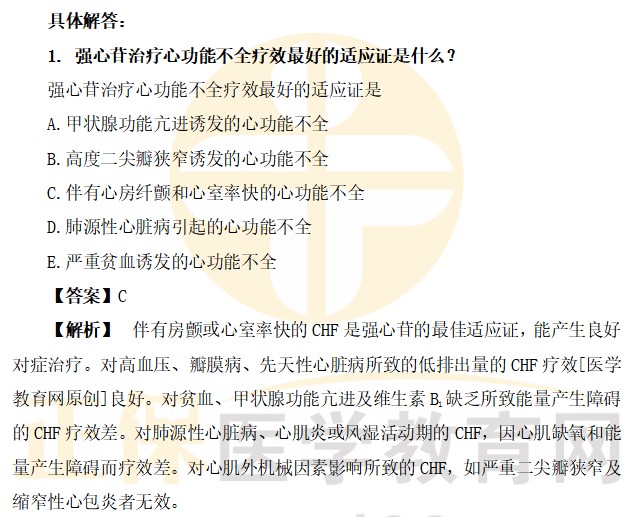 1.強(qiáng)心苷治療心功能不全療效最好的適應(yīng)證是什么?