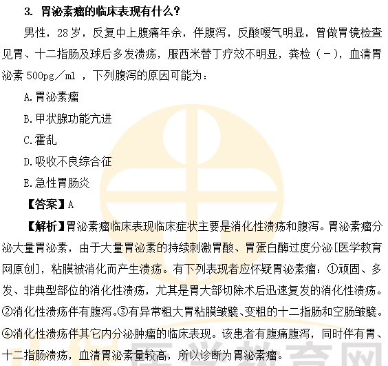 3.胃泌素瘤的臨床表現(xiàn)有什么?