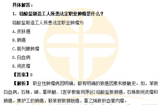 1. 鉻酸鹽制造工人所患法定職業(yè)腫瘤是什么?
