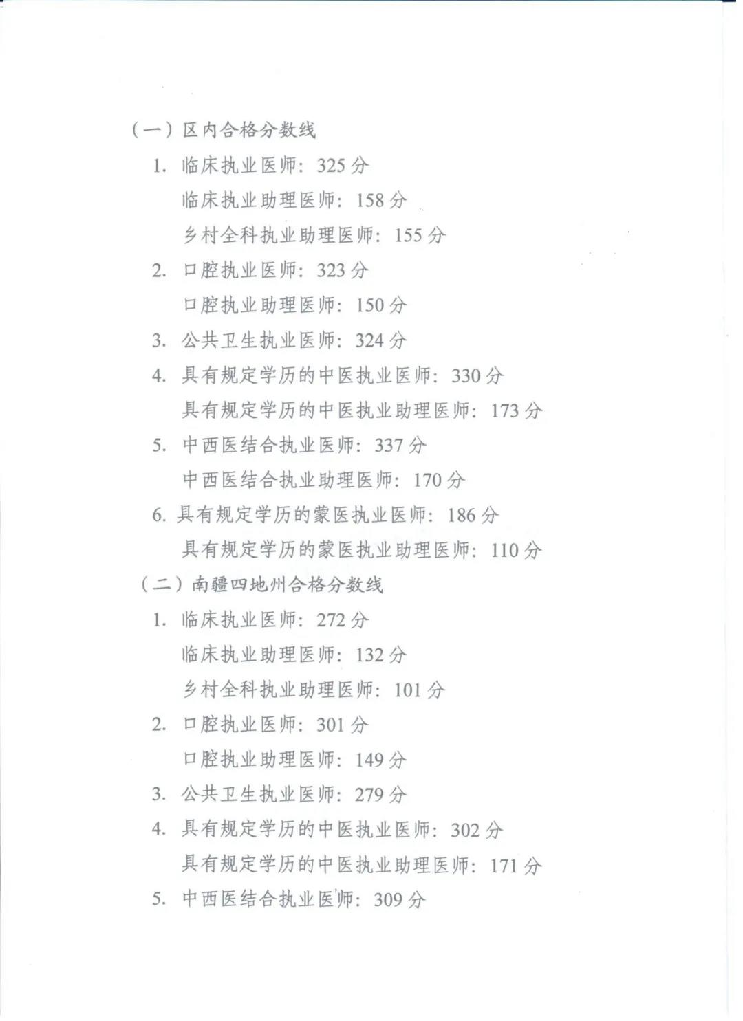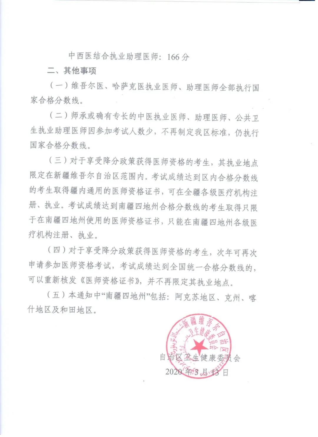 2019年新疆考區(qū)公衛(wèi)醫(yī)師綜合筆試合格分數線公布!詳情如下: