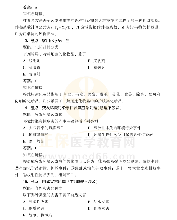 關(guān)于“2021年公衛(wèi)執(zhí)業(yè)/助理醫(yī)師考試備考【環(huán)境衛(wèi)生學(xué)】高頻考點速記11-15”相關(guān)內(nèi)容,相信準(zhǔn)備參加2021年公衛(wèi)執(zhí)業(yè)/助理醫(yī)師考試的考生都想掌握,為方便大家備考,在此醫(yī)學(xué)教育網(wǎng)小編為大家整理如下內(nèi)容: