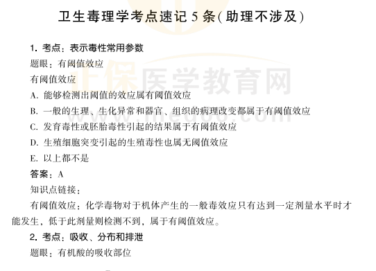 2021年公衛(wèi)執(zhí)業(yè)醫(yī)師考試【衛(wèi)生毒理學】科目必背考點速記1-5