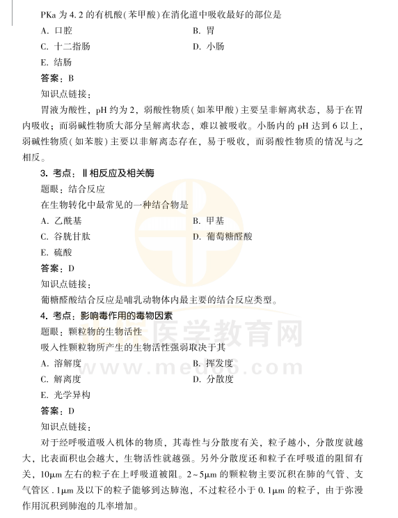 以上關(guān)于“2021年公衛(wèi)執(zhí)業(yè)醫(yī)師考試【衛(wèi)生毒理學】科目必背考點速記1-5”的文章由醫(yī)學教育網(wǎng)編輯整理搜集,希望可以幫助到大家,更多的文章隨時關(guān)注醫(yī)學教育網(wǎng)!