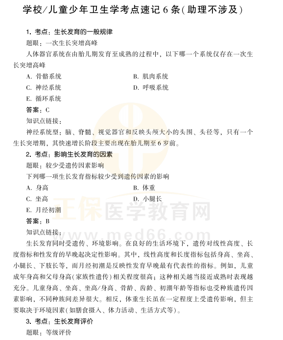 2021年公衛(wèi)執(zhí)業(yè)醫(yī)師考試【學(xué)校/兒童少年衛(wèi)生學(xué)】科目必背考點速記1-6