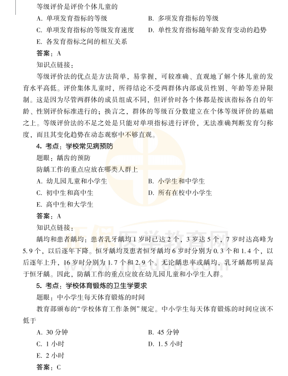 關(guān)于“2021年公衛(wèi)執(zhí)業(yè)醫(yī)師考試【學(xué)校/兒童少年衛(wèi)生學(xué)】科目必背考點速記1-6”相關(guān)內(nèi)容,相信參加2021年公衛(wèi)執(zhí)業(yè)醫(yī)師考試的考生都在學(xué)習(xí),為方便大家掌握,在此醫(yī)學(xué)教育網(wǎng)小編為大家整理如下內(nèi)容: