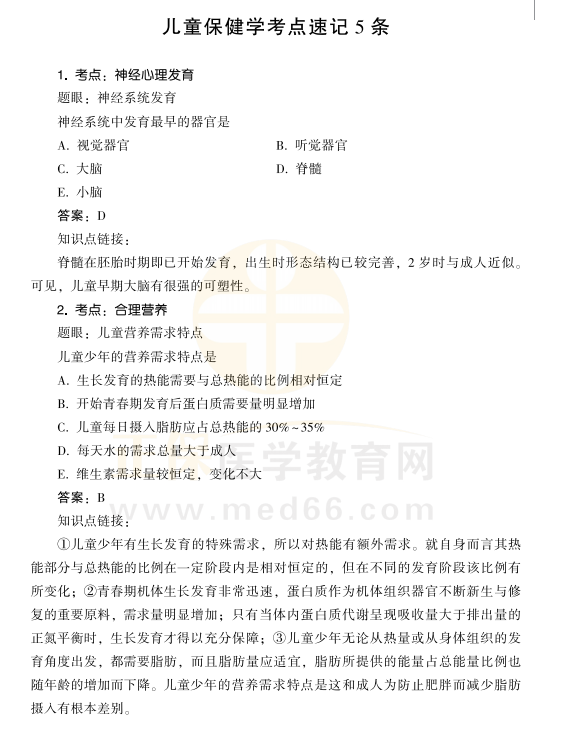 以上關(guān)于“2021年公衛(wèi)執(zhí)業(yè)/助理醫(yī)師考試“兒童保健學(xué)”科目必背考點(diǎn)速記1-5”的文章由醫(yī)學(xué)教育網(wǎng)編輯整理搜集,希望可以幫助到大家,更多的文章隨時(shí)關(guān)注醫(yī)學(xué)教育網(wǎng)!