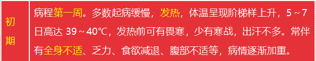 1.典型傷寒的臨床表現(xiàn) 整個病程4——5周,臨床經(jīng)過分為下述四期。