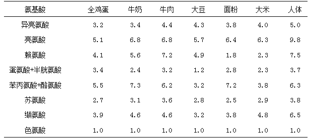幾種中國食物和人體蛋白質(zhì)氨基酸模式