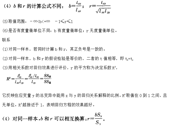 (3)b和r的含義不同:b表示x每改變一個(gè)單位,y平均增(減)b個(gè)單位;r說明具有直線關(guān)系的兩個(gè)變量間相關(guān)的密切程度與相關(guān)方向。
