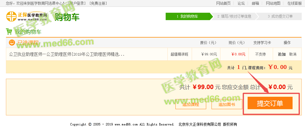 第一步:點(diǎn)擊“0元購課”按鈕,加入我的購物車;