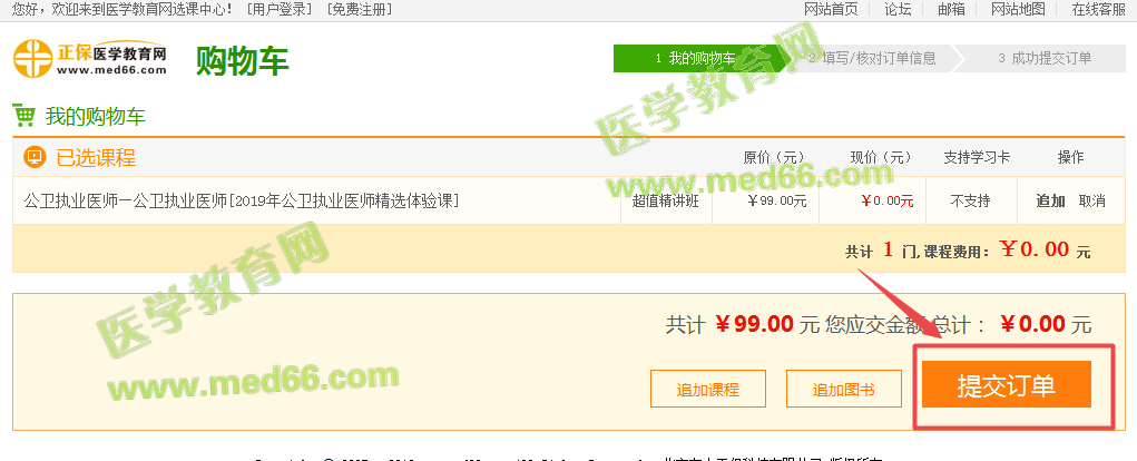第一步:點擊“0元購課”按鈕,加入我的購物車;