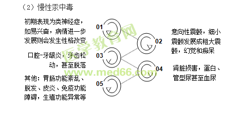 2)中度中毒:輕度中毒基礎(chǔ)上,有下列一項(xiàng):①性格情緒改變;②醫(yī)學(xué)|教育網(wǎng)上肢粗大震顫;③明顯腎臟損害。