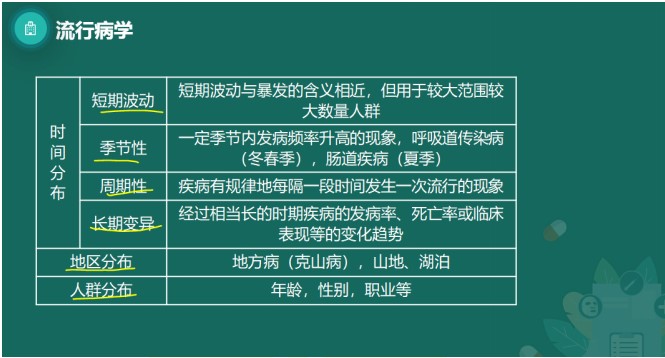 流行病學疾病分布中關(guān)于流行強度和三間分布是流行病學近3年考了3次的知識點,此部分內(nèi)容看著很簡單,但是很容易混淆,若不是深入理解,很容易被迷惑。其主要考察點在于對其概念的理解。