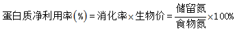 上式中:吸收氮=食物氮-(糞氮-糞代謝氮)