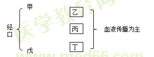『答案解析』甲肝、戊肝的傳播途徑是消化道傳播,乙肝、丙肝、丁肝主要是血液傳播。