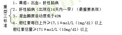 凝血酶原活動度低于40%。黃疸迅速加深,膽紅素每日上升≥17.1μmol/L(1mg/dl)以上