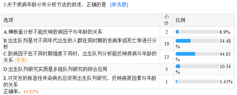 以上就是醫(yī)學(xué)教育網(wǎng)關(guān)于“【??颊_率44.83%】關(guān)于疾病年齡分布分析方法的敘述,正確的是?”的相關(guān)介紹,希望能夠幫助到大家,更多資訊盡在醫(yī)學(xué)教育網(wǎng)公衛(wèi)醫(yī)師欄目!