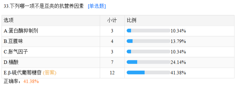 以上就是醫(yī)學(xué)教育網(wǎng)關(guān)于“【摸底測(cè)試正確率41.38%】下列哪一項(xiàng)不是豆類的抗?fàn)I養(yǎng)因素?”的相關(guān)介紹,希望能夠幫助到大家,更多資訊盡在醫(yī)學(xué)教育網(wǎng)公衛(wèi)醫(yī)師欄目!