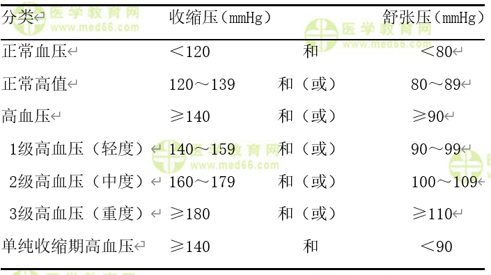 血壓水平的定義和分類(《中國高血壓防治指南(2010年)》):