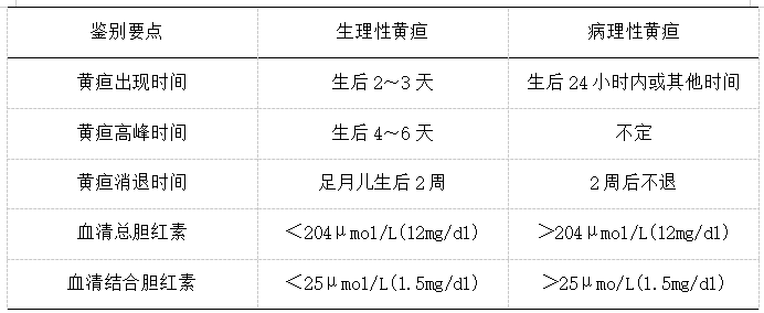 新生兒生理性黃疸與病理性黃疸的鑒別: