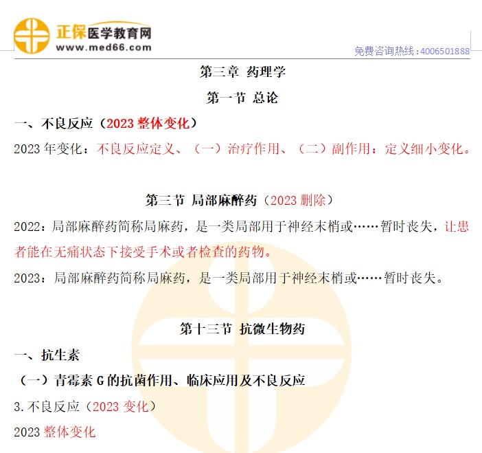 2023年公衛(wèi)助理醫(yī)師綜合筆試《藥理學(xué)》教材變動匯總