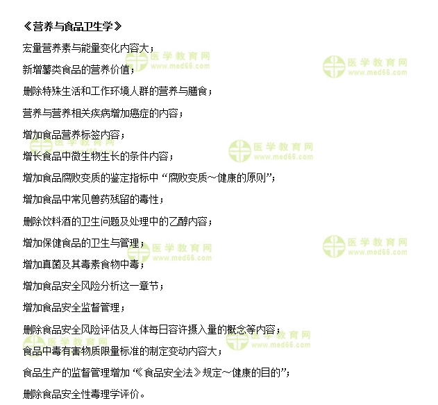 2019公衛(wèi)執(zhí)業(yè)醫(yī)師應(yīng)試指南《營養(yǎng)與食品衛(wèi)生學(xué)》內(nèi)容變動