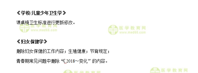 2019公衛(wèi)執(zhí)業(yè)醫(yī)師應(yīng)試指南《學(xué)校/兒童少年衛(wèi)生學(xué)》和《婦女保健學(xué)》內(nèi)容變動(dòng)