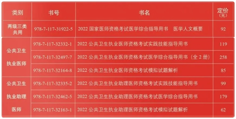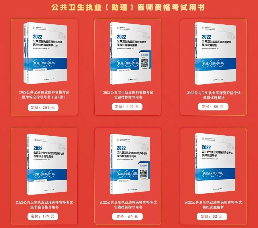 2022年公衛(wèi)執(zhí)業(yè)/助理醫(yī)師資格考試輔導(dǎo)用書書號及價格: