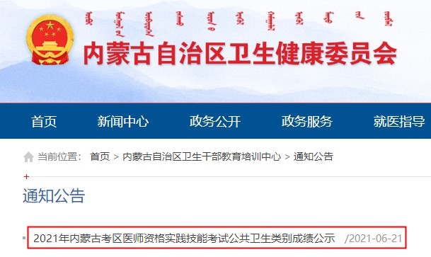 2021年內(nèi)蒙古考區(qū)醫(yī)師資格實(shí)踐技能考試公共衛(wèi)生類別成績公示,查看地址: