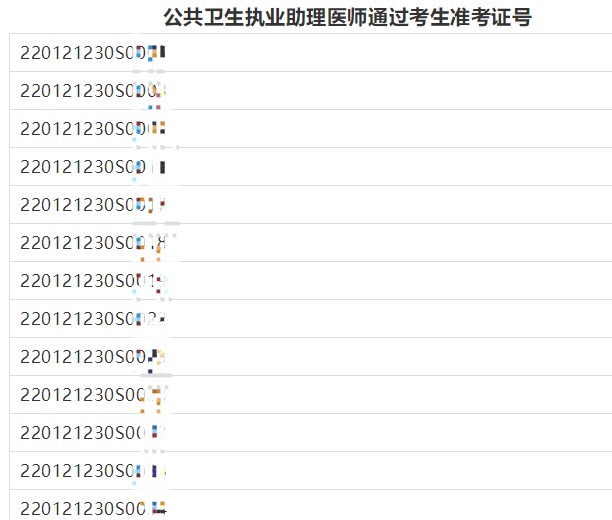 公共衛(wèi)生執(zhí)業(yè)助理醫(yī)師通過(guò)考生準(zhǔn)考證號(hào)