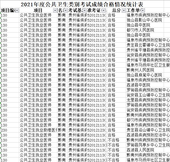 黔南考點(diǎn)發(fā)布2021年公衛(wèi)執(zhí)業(yè)/助理醫(yī)師實(shí)踐技能考試合格情況表